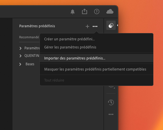 La première solution consiste tout simplement à importer les presets sur Lightroom CC sur votre PC, ils seront automatiquement ajoutés à votre bibliothèque de presets sur votre smartphone. Si vous n'avez ni de PC, ni Lightroom CC sur PC ou bien que vous voulez tout faire via votre smartphone, voilà les étapes à suivre.